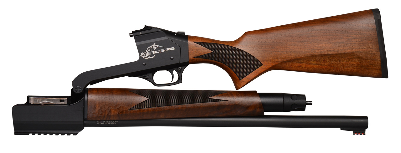 Unlike traditional shotguns of its class, the Bushpig has an action break ability, allowing the user to store the bushpig in tight spaces and transport the bushpig in a safe and compact manner.