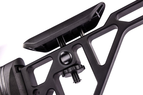 The rifle’s adjustable rear stock enhances shooter comfort and stability through a personalized fit, featuring customizable length of pull, cheek rest, and recoil pad adjustments. The skeletonized rear stock supports additional weights for increased stability. Additionally, an adjustable, ambidextrous thumb rest offers a solid and repeatable rest for thumb-forward grips, ensuring optimal control and performance. The standard pistol grip is adjustable in angle and position to ensure optimal distance to the trigger and comfortable shooting position. The grip is AR-compatible which makes it possible to have customizable grip options.
