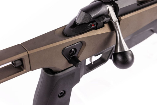 The rifle’s medium contour barrel is designed for enhanced accuracy and reduced vibration. The free-floating, cold hammer-forged barrel eliminates vibration and withstands heat, ensuring precise shooting. The fluted barrel is light enough, making the rifle easy to carry during long hunts or competitions. Caliber options start from 223 Rem up to 300 Win Mag. Rifle features 5/8”-24 muzzle thread.